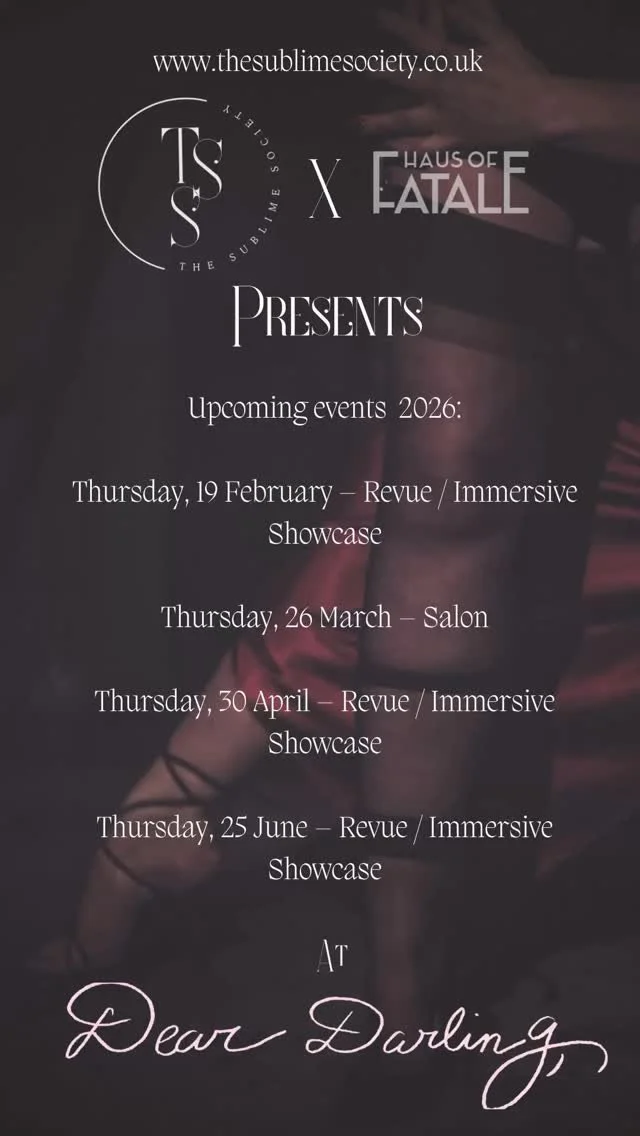 The Sublime Society is an exclusive hedonistic soirée, a sensual salon where fantasy and desire merge in an intimate, romantic setting, creating an atmosphere draped in silk and secrecy.